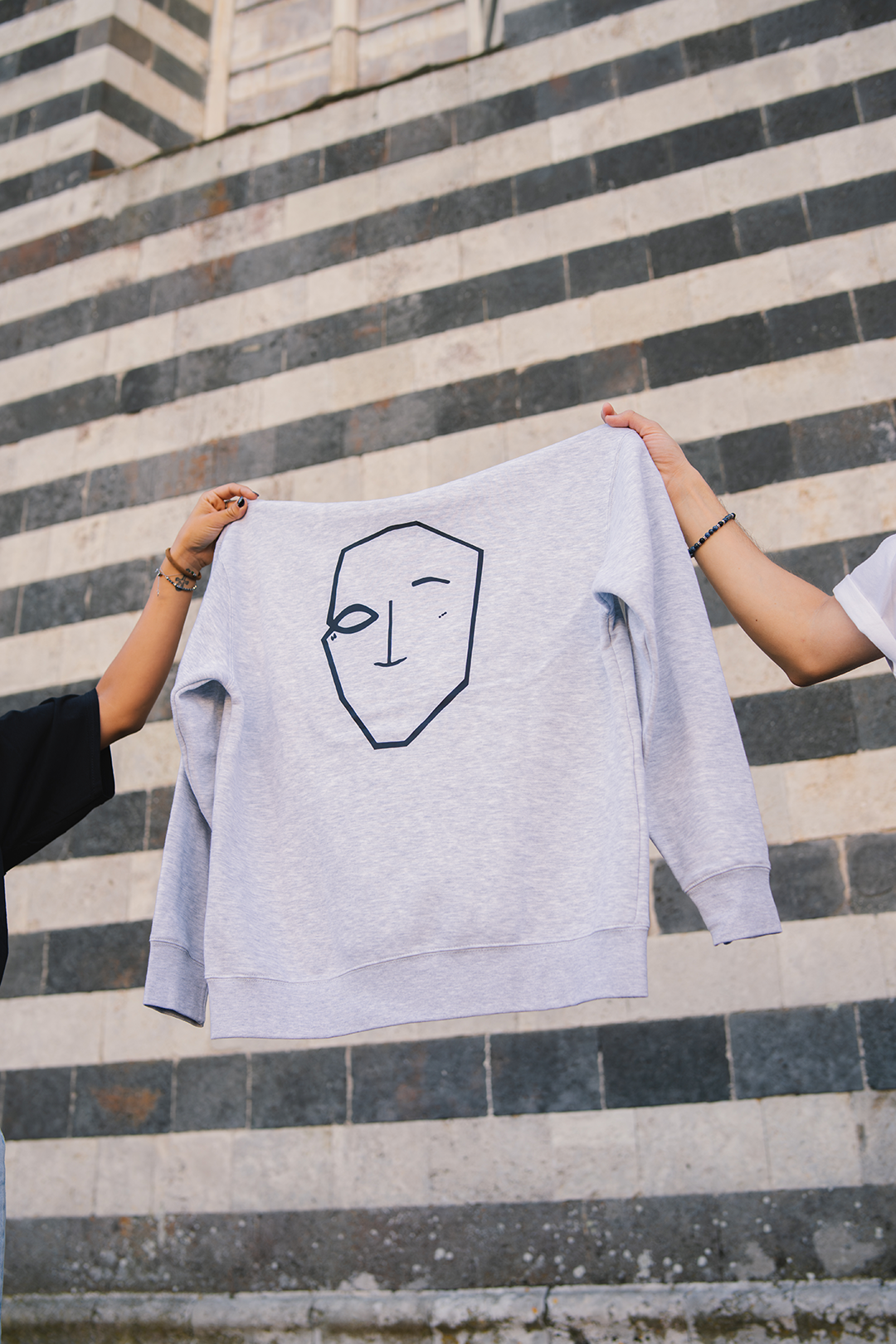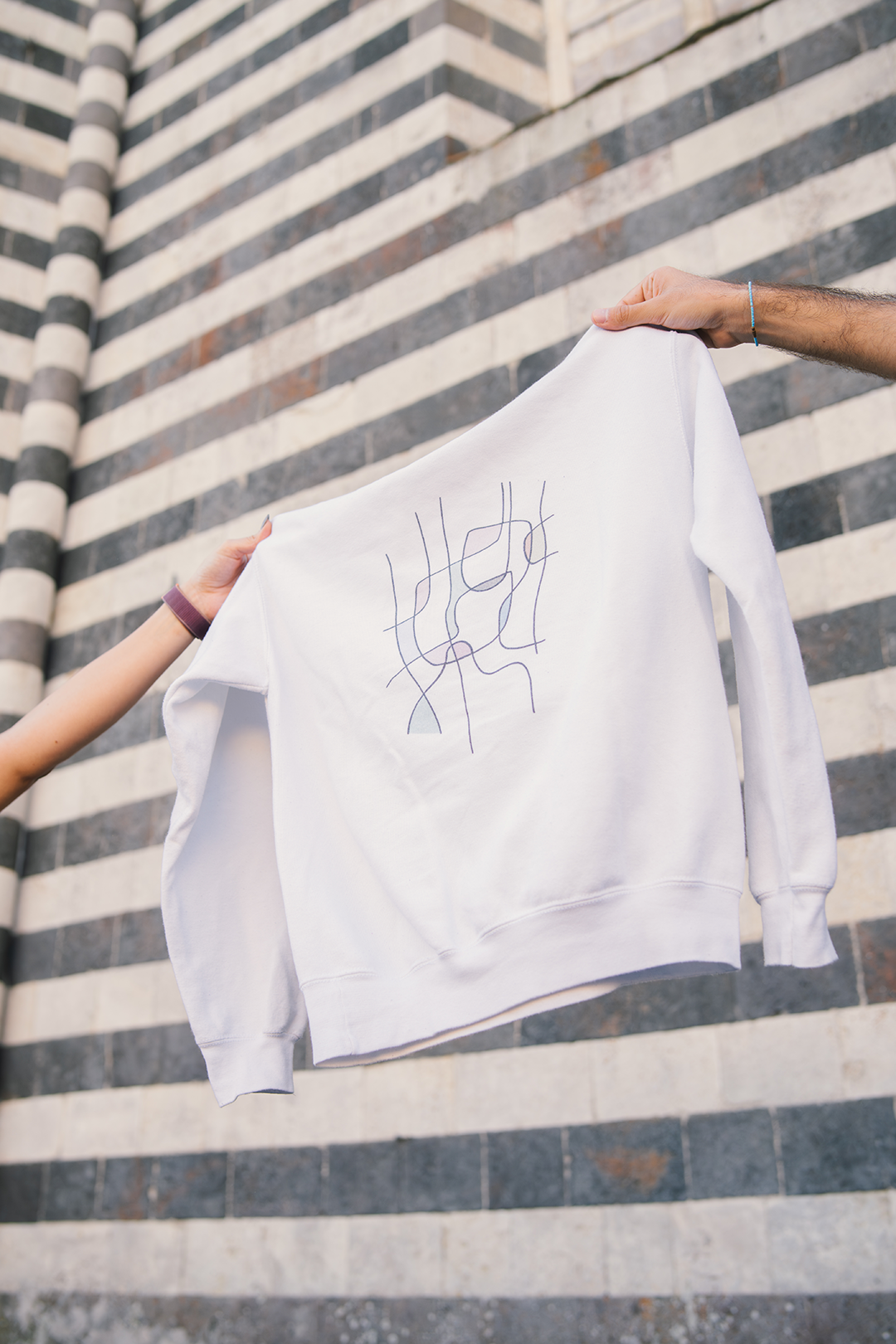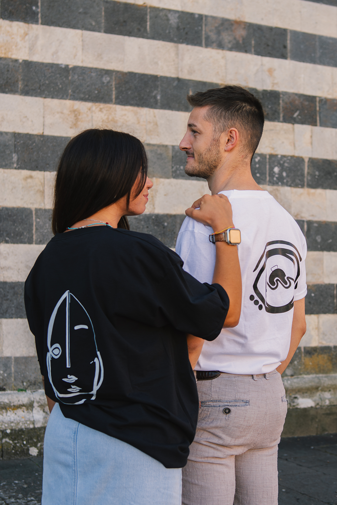 Linee decise e pulite dove nasce un’immagine ben chiara e decisa ma all’interno appaiono delle onde simbolo di emozioni interiori, pensieri agitati o di una profondità insondabile dell’animo umano.
