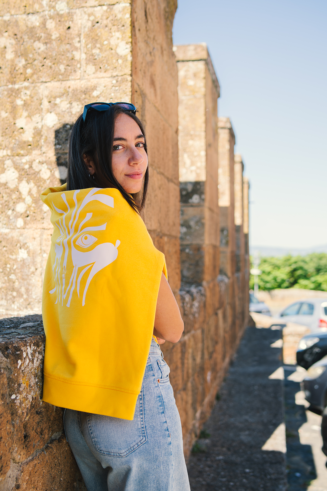 La pupilla, al centro, appare come una luna piena che sorge con un colore nero, mistero e profondità, introspezione e profondità interiore. Il nero ccostudisce ciò che non è visibile, invitandovi alla riflessione.